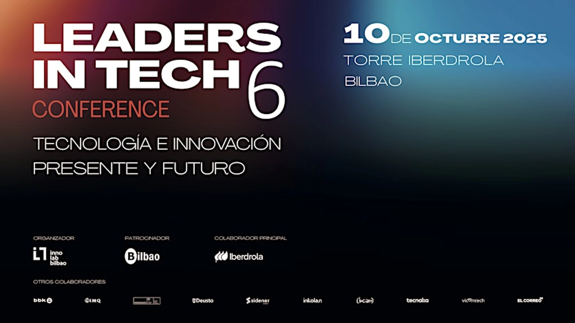 The Leaders in Tech Conference 6 will take place on Friday, October 10, 2025, at the Auditorio Torre Iberdrola in Bilbao, bringing together thought leaders, technologists and industry experts to explore the latest innovations, digital transformation trends and data-driven strategies. The event addresses topics such as AI, data infrastructure, and tech leadership in Europe.
